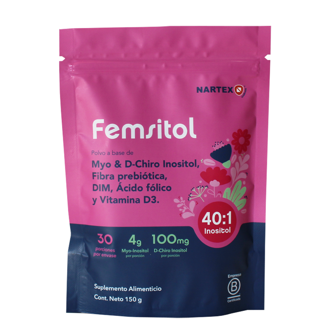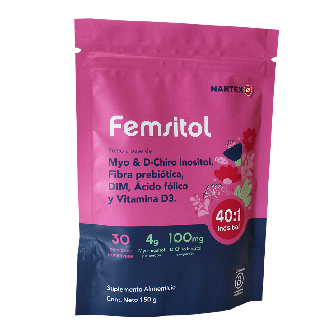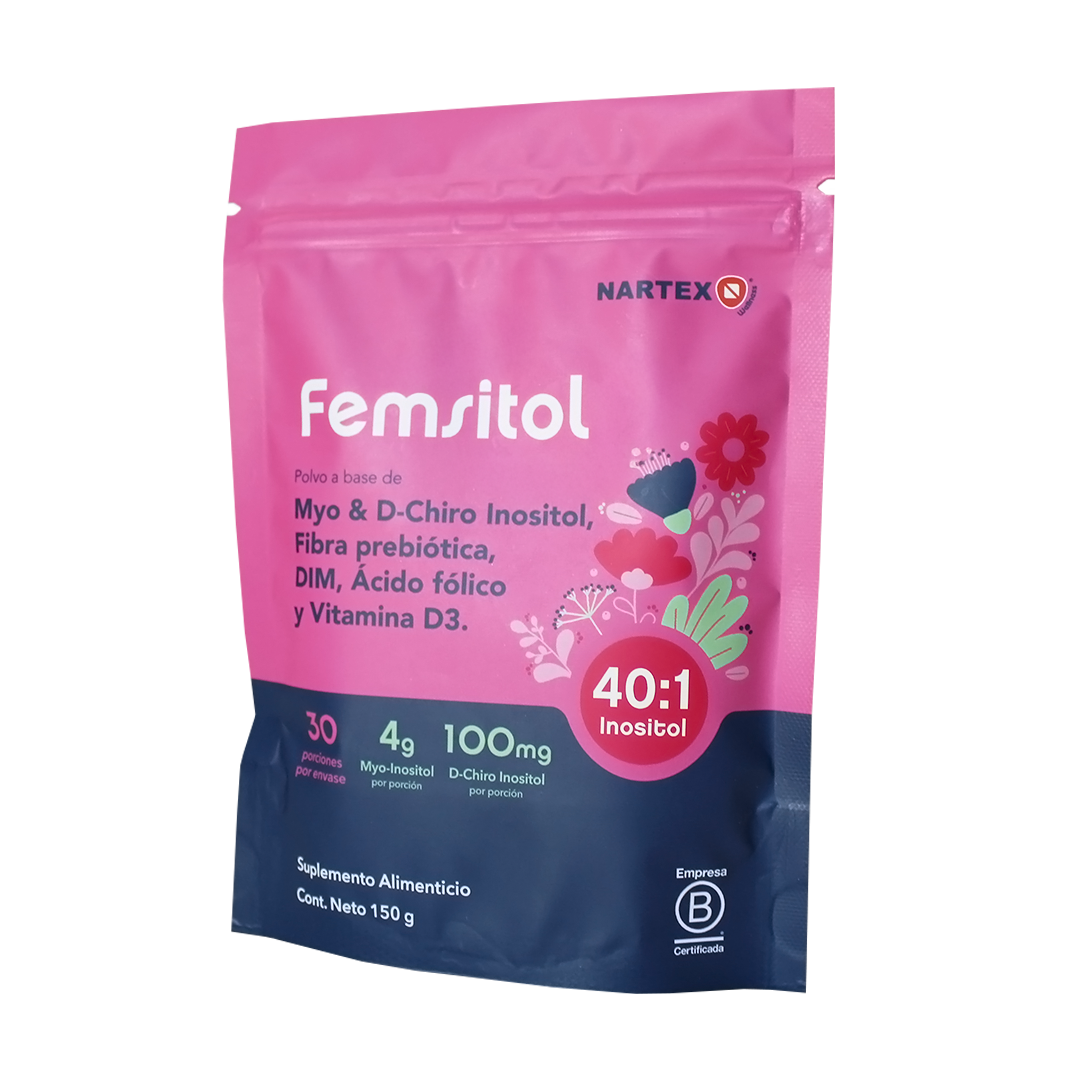Femsitol es un suplemento con inositoles (Myo y D-Chiro en proporción 40:1), DIM, ácido fólico y vitamina D3. Ideal para acompañar a las mujeres que buscan equilibrio hormonal, bienestar metabólico y un ciclo regular de manera natural. Su fórmula ha sido creada para apoyar tu salud femenina y promover el bienestar diario.