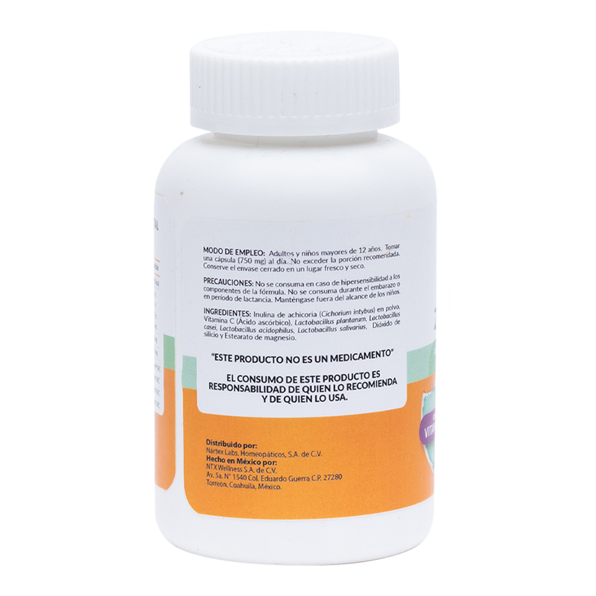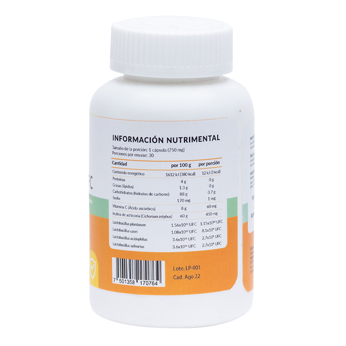 Fórmula avanzada con Lactobacillus acidophilus, L. casei, L. plantarum y L. salivarius, combinados con inulina de achicoria y vitamina C. Esta sinergia probiótica y prebiótica ayuda a mantener el equilibrio intestinal, favorece una digestión saludable y apoya las defensas naturales del organismo. Además, la vitamina C contribuye a proteger las células del estrés oxidativo y promueve la formación de colágeno, fortaleciendo piel y sistema inmune. Ideal para quienes buscan bienestar digestivo e integral en su día a día.